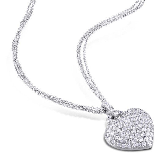 Amour 3 1/2 CT TGW Created White Sapphire Heart Pendant with Triple-Strand Chain In Sterling Silver